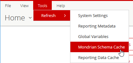 Actualiza la Caché de Esquema Mondrian y la Caché de Datos de Informes.