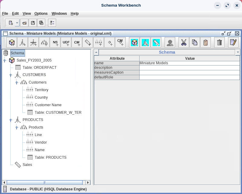 En este ejercicio práctico, construirás de forma independiente el esquema Miniature Models, demostrando tu dominio del desarrollo de esquemas Mondrian al crear un modelo analítico más sofisticado que el ejemplo Classic Models. Trabajando a tu propio ritmo con instrucciones estructuradas pero sin orientación detallada, construirás un cubo Sales_FY2003_2005 que presenta jerarquías de tres niveles en ambas dimensiones, añadiendo un nivel intermedio que refleja las rutas de desglose multinivel que suelen encontrarse en entornos de inteligencia empresarial de producción, donde los usuarios navegan desde regiones continentales a través de países hasta clientes específicos, o desde categorías de productos a través de proveedores hasta SKU individuales.