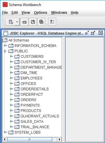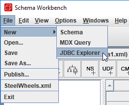 Para ver la base de datos SampleData en JDBC Explorer, en el menú selecciona Archivo > Nuevo > JDBC Explorer.