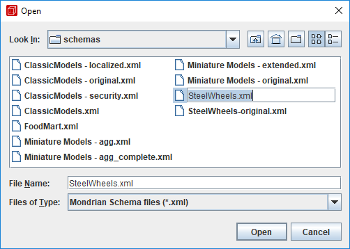 Abrir y examinar un esquema Mondrian existente (SteelWheels.xml)