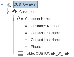 Haz clic en el Valor de name y selecciona CUSTOMER_W_TER, y presiona Tab.