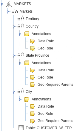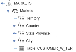 Crear una dimensión MARKETS de cuatro niveles con jerarquías de Territorio, País, Estado/Provincia y Ciudad