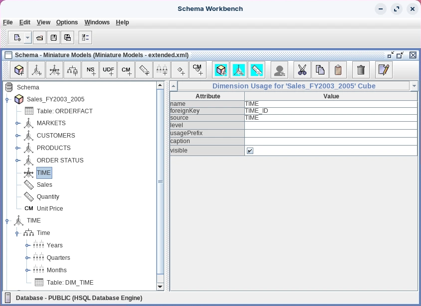 El siguiente paso es referenciar la dimensión TIME desde dentro del cubo SALES.