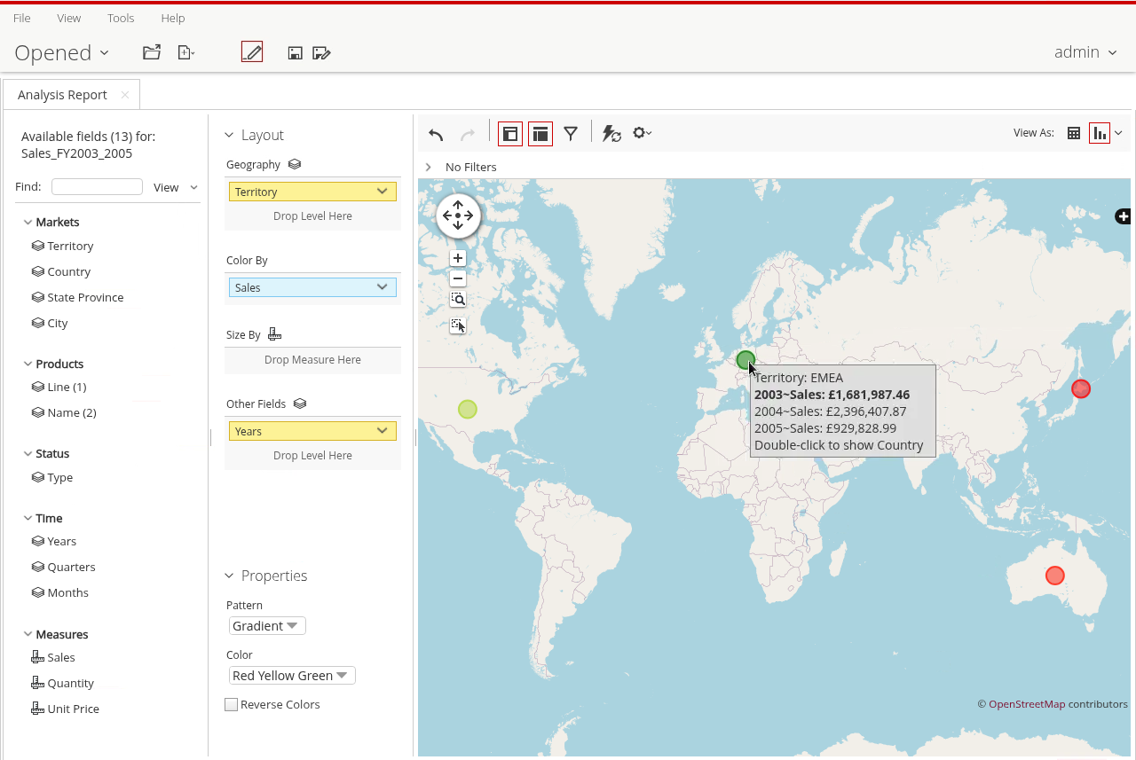 Si estás conectado a internet .. intenta crear un informe Geo Map.