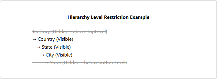 Juntos, estos atributos definen qué niveles de la jerarquía son visibles—todo lo que esté por encima topLevel y por debajo bottomLevel permanece oculto.